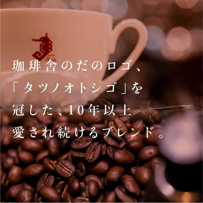 辰年生まれの「タツノコブレンド」 珈琲舎のだのロゴであるタツノオトシゴを冠した「タツノコブレンド」は10年以上愛されている当店オリジナルブレンドです。
