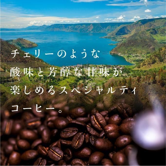 インドネシアのスマトラ島北部にあるトバ湖のほとりで作られている珈琲です。豊かな土壌と標高1200〜1300mの高地ゆえの大きな寒暖差によって生豆の栄養がしっかり育てられています。