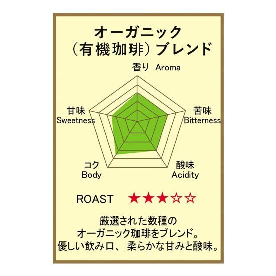 相性の良いお菓子→マカダミアンクッキーはこちらから やわらかな甘味と酸味、コクが楽しめる「オーガニック(有機珈琲)ブレンド」。