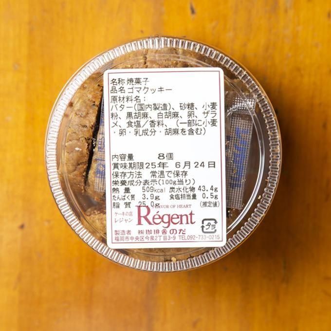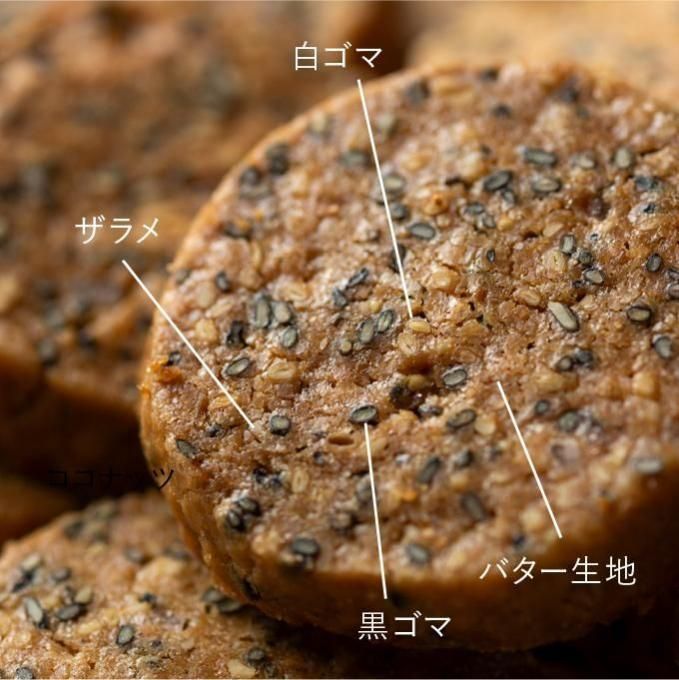 | 原材料 | バター(国内製造)、砂糖、小麦粉、黒胡麻、白胡麻、卵、ザラメ、食塩/香料(一部に小麦、卵、乳成分、胡麻を含む) |